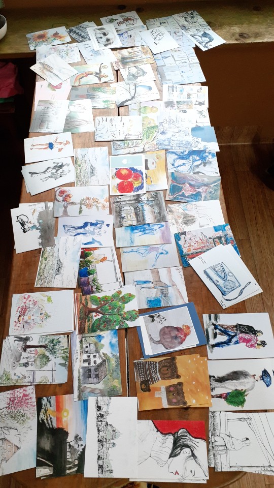 도서관 수업 종강에 맞추어 엽서 전시와 파티를 위해 엽서를 만들었습니다. 세상 하나 뿐인 각자의 일상이 엽서 아느올 들어가니 더욱 특별해집니다.